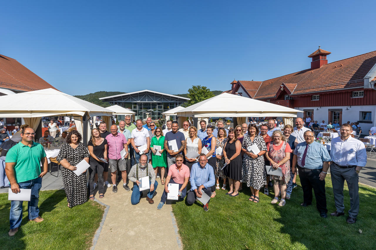 Im Rahmen des IHK-Sommerfests wurde Björn Lückhof für über 10 Jahre ehrenamtliche Tätigkeit im Prüfungsausschuss der Bauzeichner durch IHK-Präsident Dr. Felix Heusler und Dr. Gerd Hackenberg, Bereichsleiter für Aus- und Weiterbildung, geehrt.
